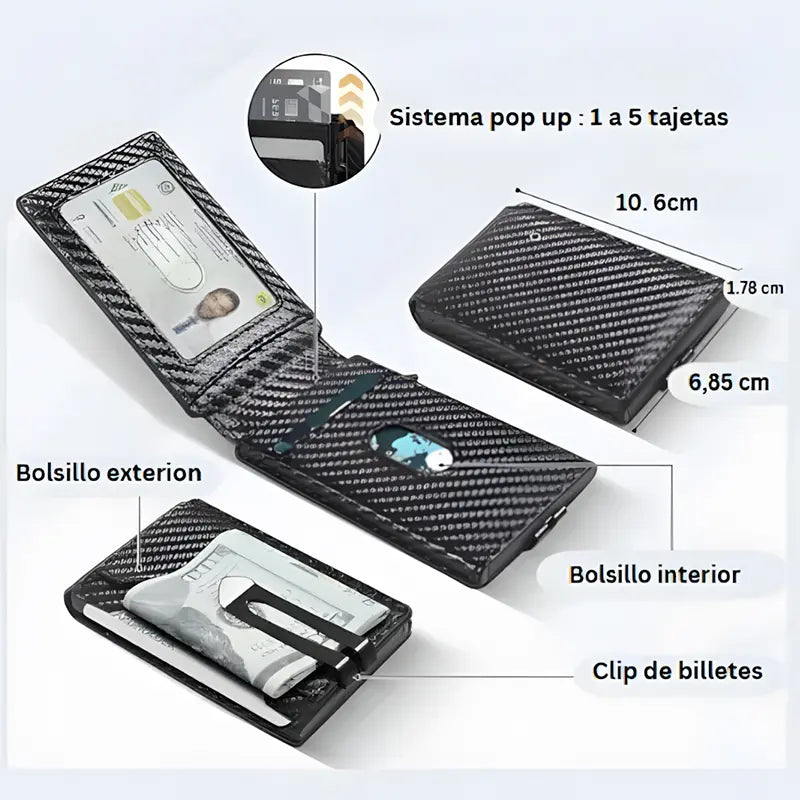 📦 Capacidad: espacio para tarjetas, billetes y documentos